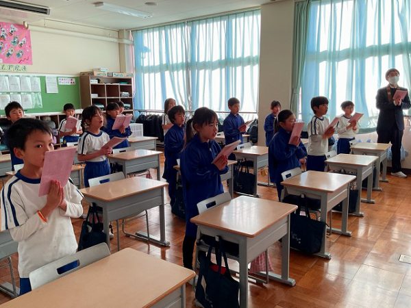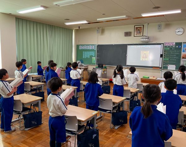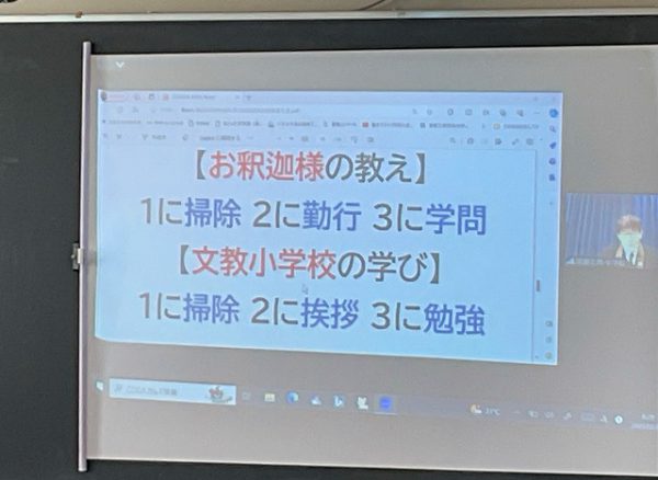 全校目標「人としての基本の行いを仕上げよう」の確認より、お釈迦さまの教え「一に掃除、二に勤行、三に学問」のお話を聞きました。本校も基本は同じです。「一に掃除、二に挨拶、三に勉強」。