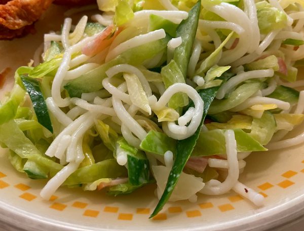 ☆ 「米粉のスパゲッティサラダ」は、キャベツやきゅうり、ハムを合わせました。米粉のパスタのもちもちした食感が特徴的でした。