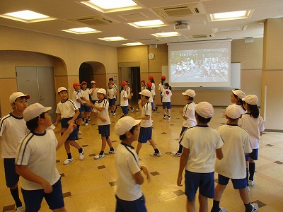 そして、3年生と合同での「文教ソーラン」練習です。今日は、授業の最後に1番のふりつけを曲に合わせてやってみましたら…速い!!! 「1,2,3,4…」と拍を取りながら練習しているとうまくいっていたのですが…。あと、練習するのは10日あまり。がんばるのみ!です。