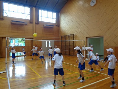 休み時間も外遊びできなかった子ども達にとって、今日の体育授業は、また、格別です。しかも、1学期最後の体育授業(ソフトバレー)です。トーナメント、3位決定戦と、決勝戦を行いました。