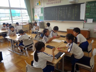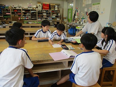 来週の火曜日に、1学期をしめくくる「お楽しみ会」を予定しています。 今日の学級活動の時間は、それぞれの係で集まって、メンバーで相談しながら準備を進めました。