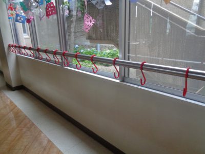 放課後に残って遊んでいたお友達が、帰る前にみんなのS管を揃えてくれていました。 明日の朝、みんなが文教バッグをかけやすいように、S管がきれいに並んでいます!