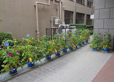 昨日、アサガオの鉢を玄関の横に移動させました。