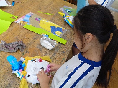 空飛ぶめがね、本から古代生物がとびだしてくる…などアイディアあふれる作品が仕上がりました。