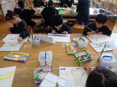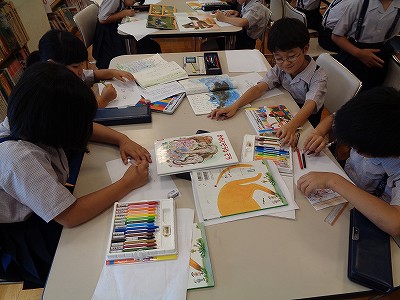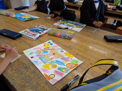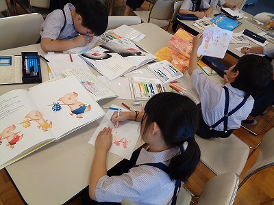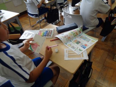 そして、今日はクイズ作りに選んだ本のイメージが受け手に伝わるようにするために、出題するお話の一場面を絵に表す活動を行いました。
