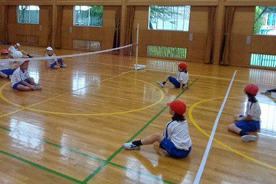 今日は、体育でパラリンピックの競技である「シッティング・バレー」に挑戦しました。