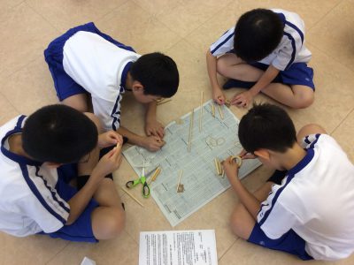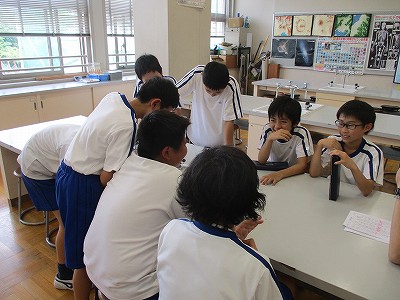 理科授業では、教室で星座盤の学習をしたあと、屋外で観察学習を行いました。