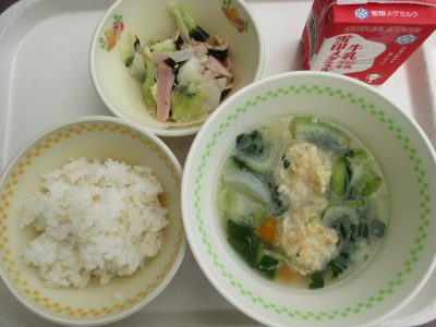 肉団子には、玉ねぎ、青ねぎ、生姜が入っています。かたい肉団子にならないように、肉団子のたねはゆるめに作って、片栗粉を入れて形を整えました。蒸して加熱しているので、形が崩れる心配がありませんでした。