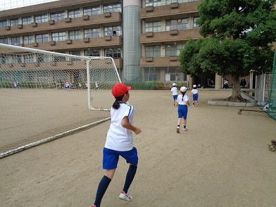 3年生体育は、今週で最後のキックベースです。午前中は雨が降っていたのですが、3年生の気持ちが通じたのか、雨が上がり、キックベースをしました。