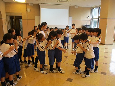 英語の指示に合わせてジェンカの動き!