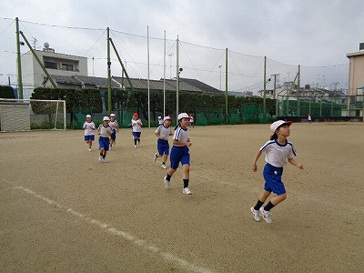 金曜日の朝は、5分間走からスタートです。