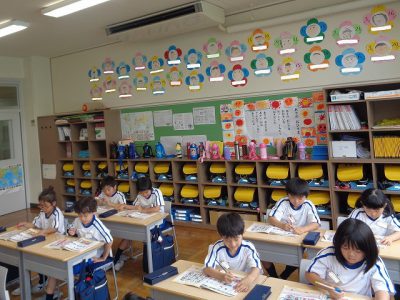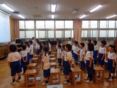 学期末にあたり、「ふりかえり」自己評価も行いました。中には「ぼくは、きついことを言ったり、やったりすることがあるので、周りの人は嫌な思いをしているかもしれない」と自身を反省し、周りのことを考えているものもありました。高学年に向けて、内面の成長を感じさせるものでした。まだまだな面もありますが、一歩一歩の成長をしっかり見届けたいと思います。