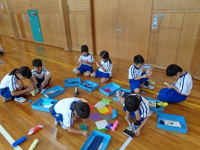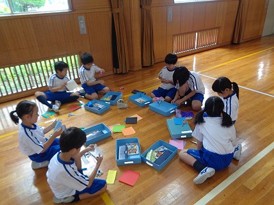 1・2年生が交流できるように、小さなグループを作って、一緒に作っています。