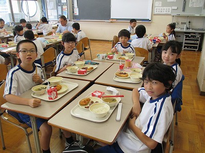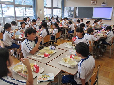 食事中は、6年生が中心となって話していました。