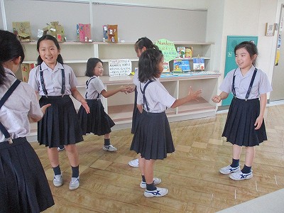 今日も体を動かしながら楽しく英語を学び、異学年交流も楽しみました。