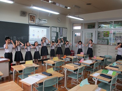 金曜日の朝は、「英語朝体操」があります。