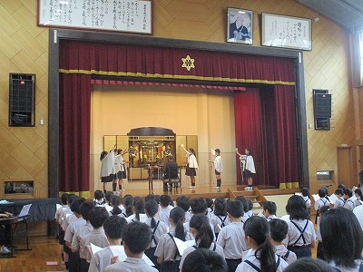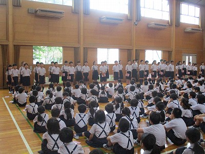 最後に、2年生の伴奏に合わせて「たなばたさま」を歌い、『たなばた ものがたり』の読み聞かせをして集会を終えました。