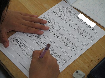 自分の手元に戻ってきた感想シートを、嬉しそうに読み、また、その感想を書きました。
