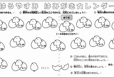 さて、今月の保健だよりの裏面には「春休み歯みがきカレンダー」を記載しています。