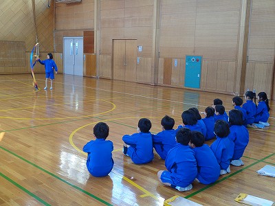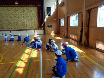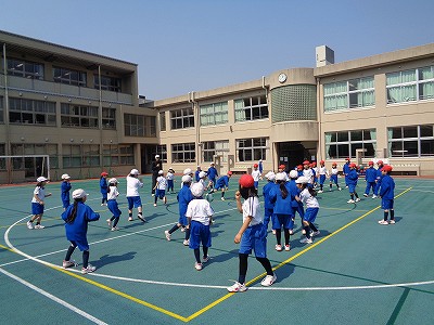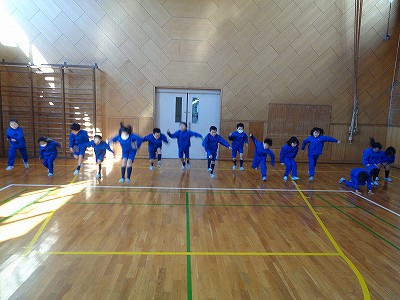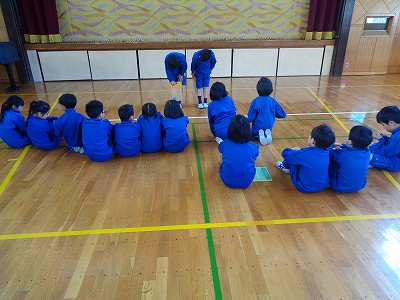 今日も日直さんが前に出て、自分たちで準備体操ができました。