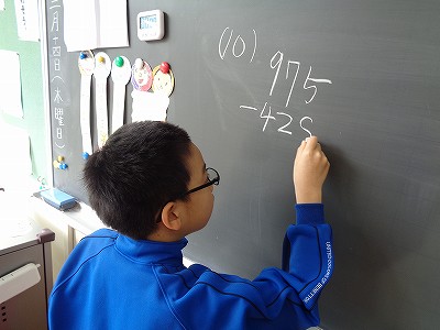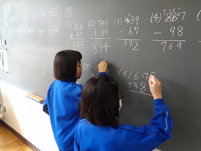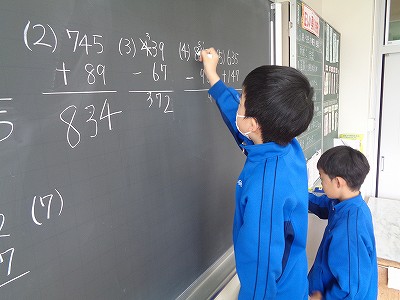 一の位から位毎に丁寧に計算し、繰り上がり・繰り下がりが正確に速くできるように、日々、がんばっています!