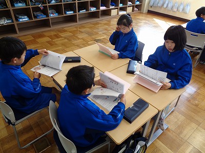 昨日に引き続き、国語は物語文を読み進め、登場人物の気持ちを考えました。