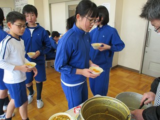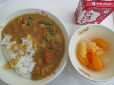 じゃがいも、人参、ブロッコリー、三度豆、かぼちゃ、玉ねぎといつもと同じカレーですが、「卒業のお祝い」と「ありがとう」の気持ちをこめて調理しました。
