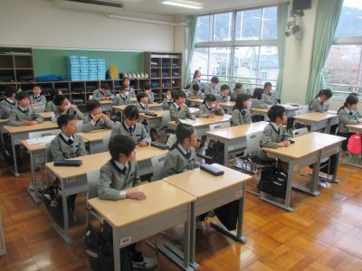 今日は、1年生から6年生まで、全校生が登校する最終日でした。