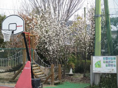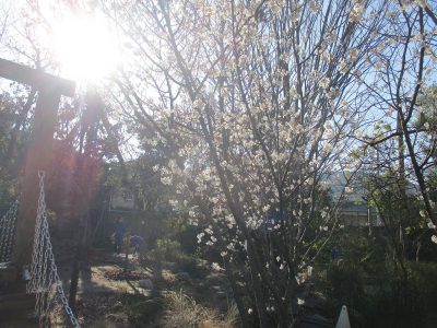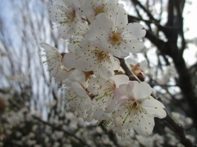 正門前の「しだれ梅の花」の次は、この「桜桃の花」。