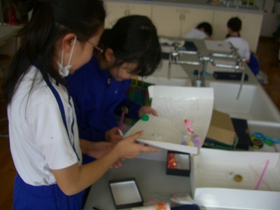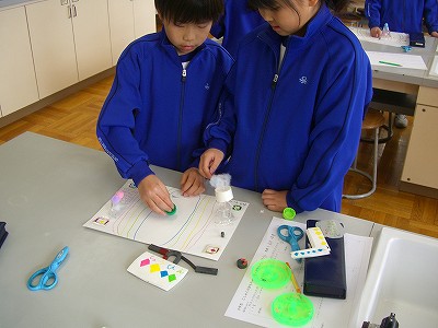 次は、理科の「じしゃくのおもちゃ作り」の様子です。