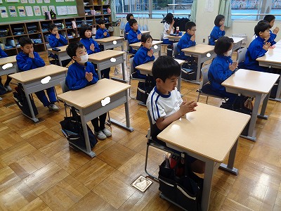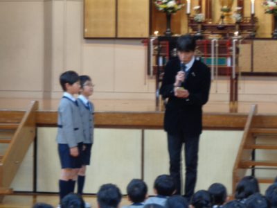 4,5,6年生は卒業式に出席しますが、水曜日の礼拝に全学年がそろって臨むのは、今日が最後でした。
