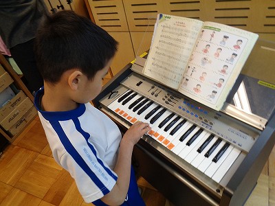 音楽室に入ると、けんハモの練習をして、学習のスタートを待ちます。