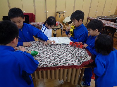 「♪さんぽ」の合奏に向けて、楽器の確認&パート分けを行いました。