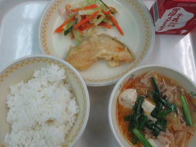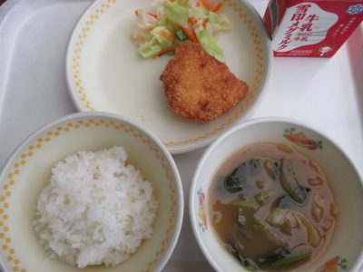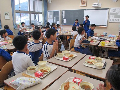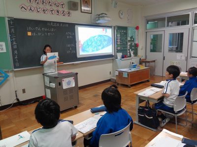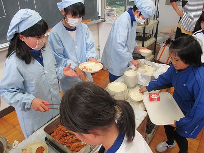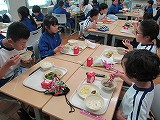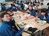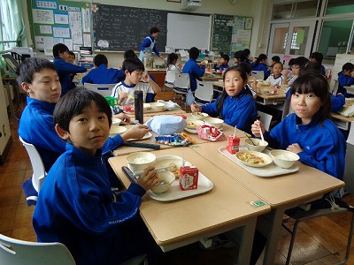 給食の時間に、係が読み聞かせをしてくれました。とても聞き取りやすい声で、みんな静かに聞き入っていました。