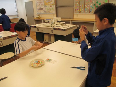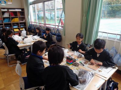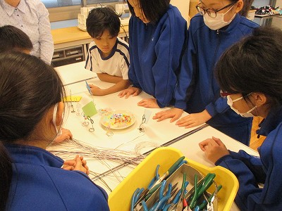 今日の図工科授業は、4週間にもわたり取り組んできた「ビーンズハウス」の完成を迎え