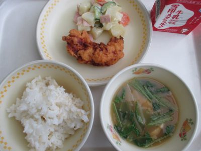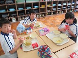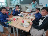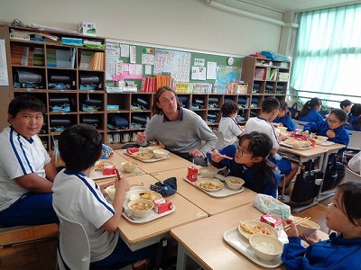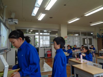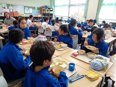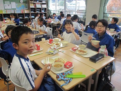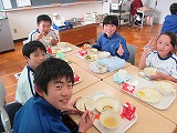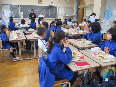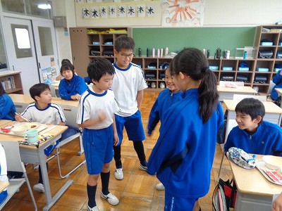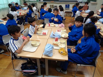 日直さんの合図で、いつもの通りの「食前のことば」を唱え、おいしいおいしいお弁当を食べました。後半の活動に向け、しっかりとエネチャージができました。