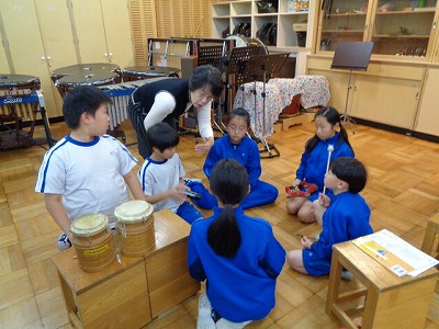 ウォーミングアップの打ち方に慣れ、新しいリズムをみんなで練習しました。