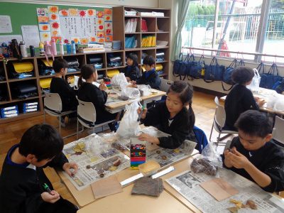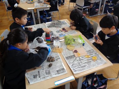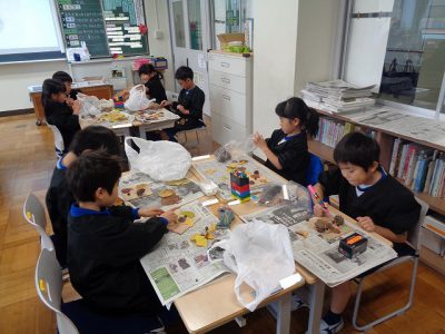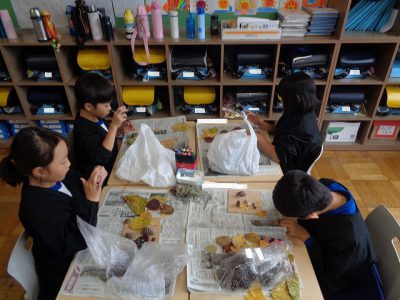 帰校後は、明日の造形遊びの準備をしました。教室の中が、秋色に包まれています。