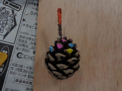 カードを挟んでも倒れないようにしっかり土台を作ることもポイントです。飾りはビーズを通したり、細い針金を使ってイヤリングのようにぶら下げてみました。