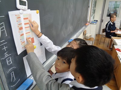 なお、今、児童会本部メンバーは、毎日休み時間に集まっています。そして「月かげ集会」に向けて、その内容や進行について一生懸命、計画を練り、みんなのためにがんばっています。