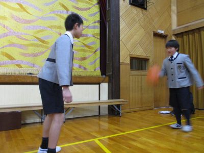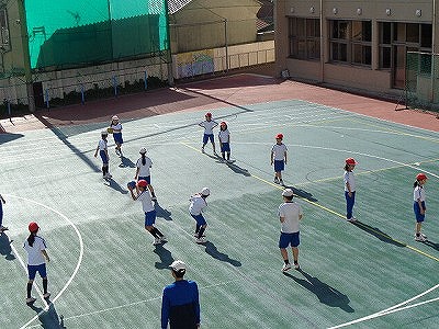 体育授業「ポートボール」練習では、いよいよ、グループで試合形式の練習です。