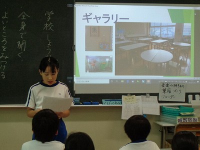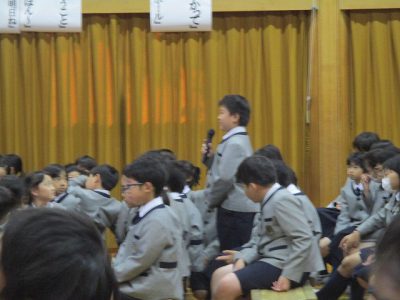児童会本部メンバーより、鑑賞のポイントの話がありました。