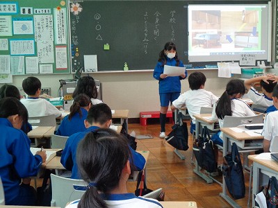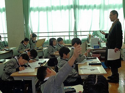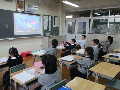最後に、英検5級の文法問題やリスニング問題を、スクリーンを見ながら、クイズのように取り組みました。1月に本校で受験する英検に向けて、がんばっています!
