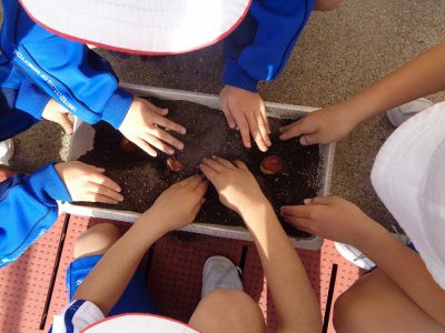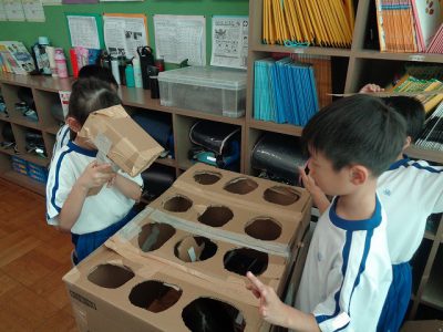 今日の生活科の授業は、チューリップの球根を観察した後、球根を植えました。