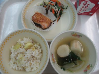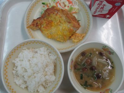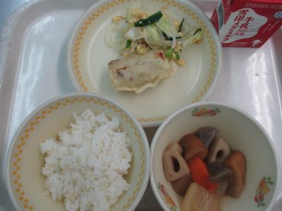 大根、こんにゃく、人参、れんこん、平天の煮物でした。野菜やこんにゃくは、一度下茹でしています。中まで味がしっかり染み込んで、おいしくなりました。