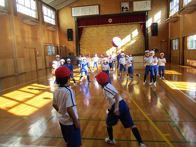 俄然はりきる子ども達。得点が入ると、役割を変わって練習です。今までの基本練習が生きています。