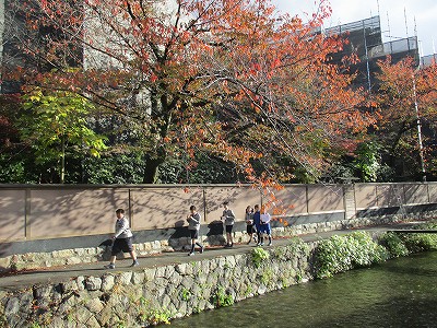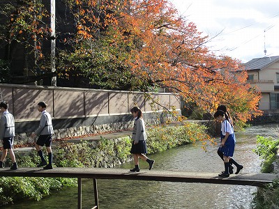 今日は、1年生の「てくてく遠足」がありました。本校から京都御苑まで、疏水沿いや鴨川を通って、全行程をテクテク歩きます。秋をいっぱいに感じられるカラフル道です。