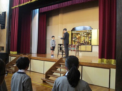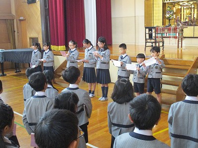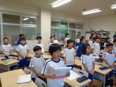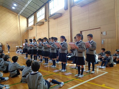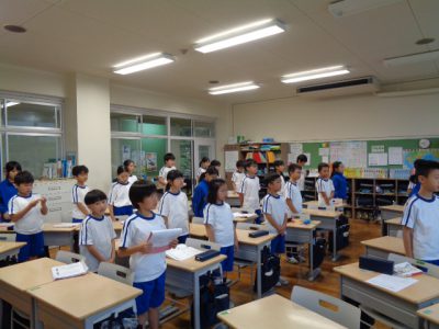 教室に帰ってきてから「あ~…、失敗してしもた…。」と残念そうなつぶやきが聞こえました。聞いている者からすると、勢いのある声で、心を一つに、そろえて朗読できていて、大満足なのですが、一生懸命練習してきたからこその悔しさでしょう。