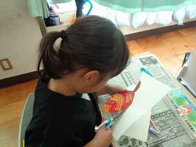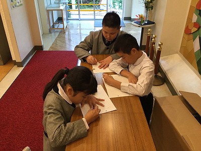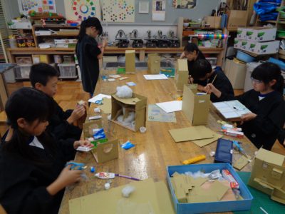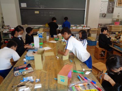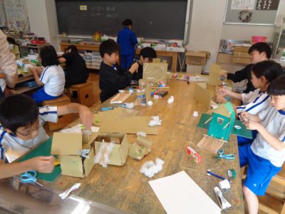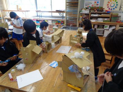 金曜日は、大好きな図工学習です。「ビーンズハウス」も今は、内装や家具作りに取り掛かっています。小さな造形物を作るので、一層手先に集中しこせます。静まり返ってはいませんが、心地よい静かな作業環境を保ちながら作業できました。