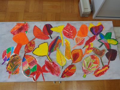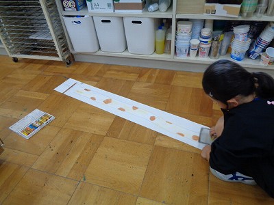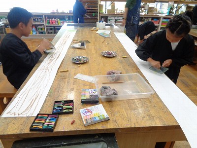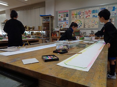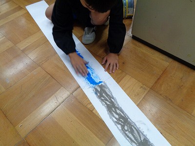 造形室の机と同じくらいの長さになった画用紙の扱いに苦戦しながらも、楽しく活動しました。